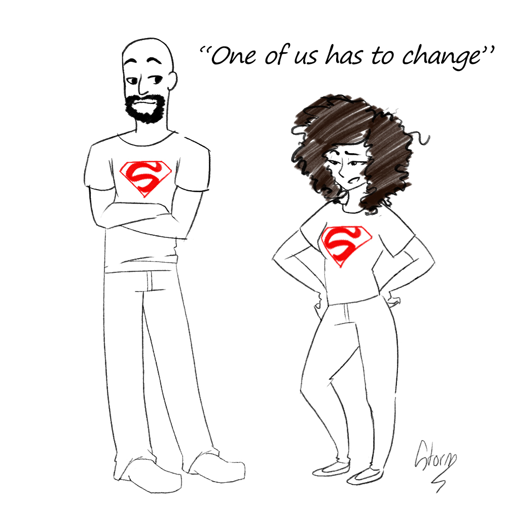 It's bound to happen when you work in a creative field that SOMEONE is going to wear the same superhero t-shirt has you. This also happened with another work mate of mine with a Batman T-shirt.